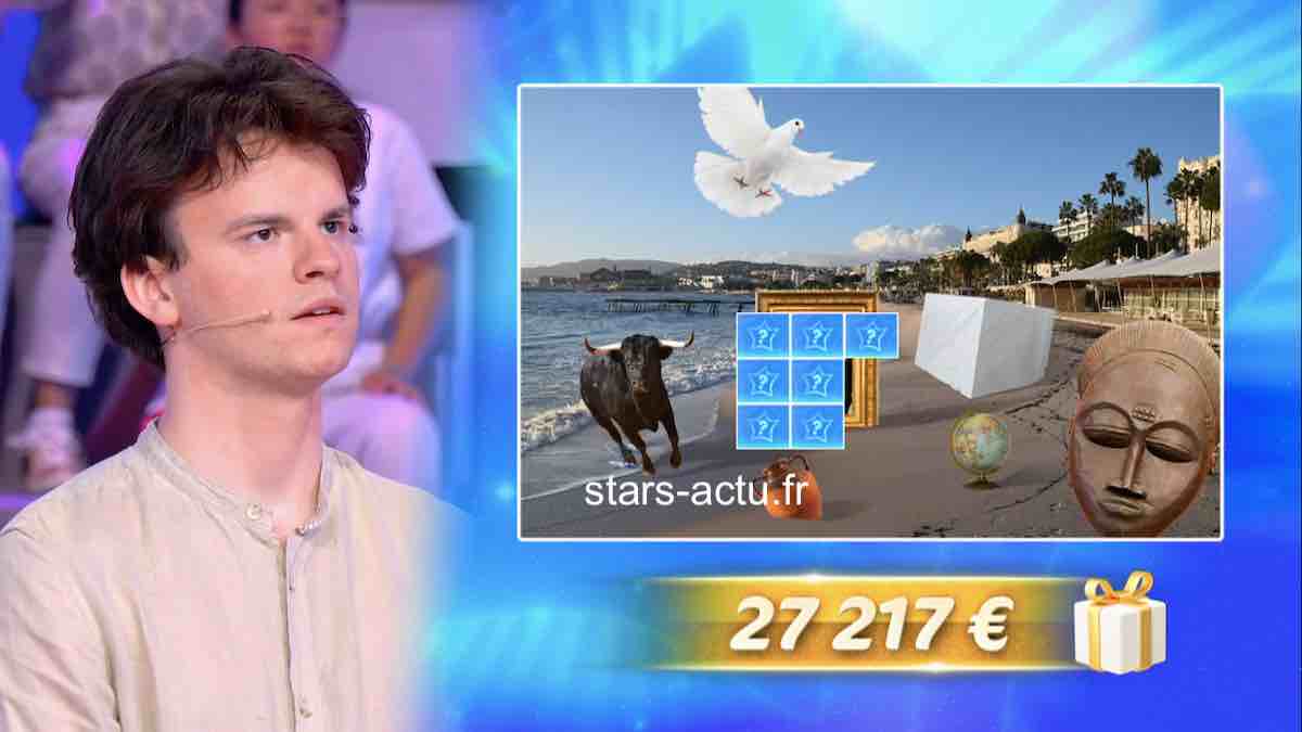 C’est Cyprien qui est devenu Maître de Midi, il a buté sur une question lors du Coup de Maître et a remporté 3.000 euros à partager avec un téléspectateur. Du côté de l’étoile mystérieuse, on a toujours 7 indices : la Croisette à Cannes en photo de fond, un globe terrestre, un masque africain, une amphore, un bloc de pierre, une colombe, et un taureau. Il ne reste plus que 7 cases, elle devrait être entièrement dévoilée dimanche midi.