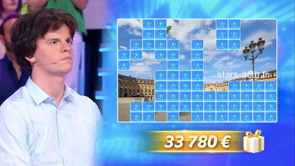 Cyprien fait ainsi monter sa cagnotte au total de 83.888 euros de gains et cadeaux. Du côté de l’étoile mystérieuse, il a proposé le nom de Henri Salvador. Encore raté ! On a toujours un ciel avec des nuages et un lampadaire. Il s’agit de la place Vendôme, à Paris, et Cyprien l’a déjà reconnue.