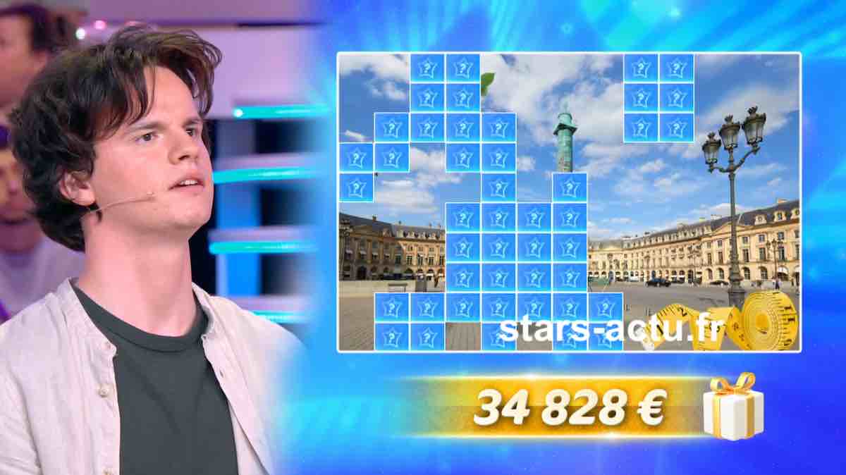 Cyprien voit sa cagnotte monter à 105.388 euros de gains et cadeaux. Du côté de l’étoile mystérieuse, on a toujours deux indices : la place Vendôme à Paris en photo de fond et un mètre de couturier.