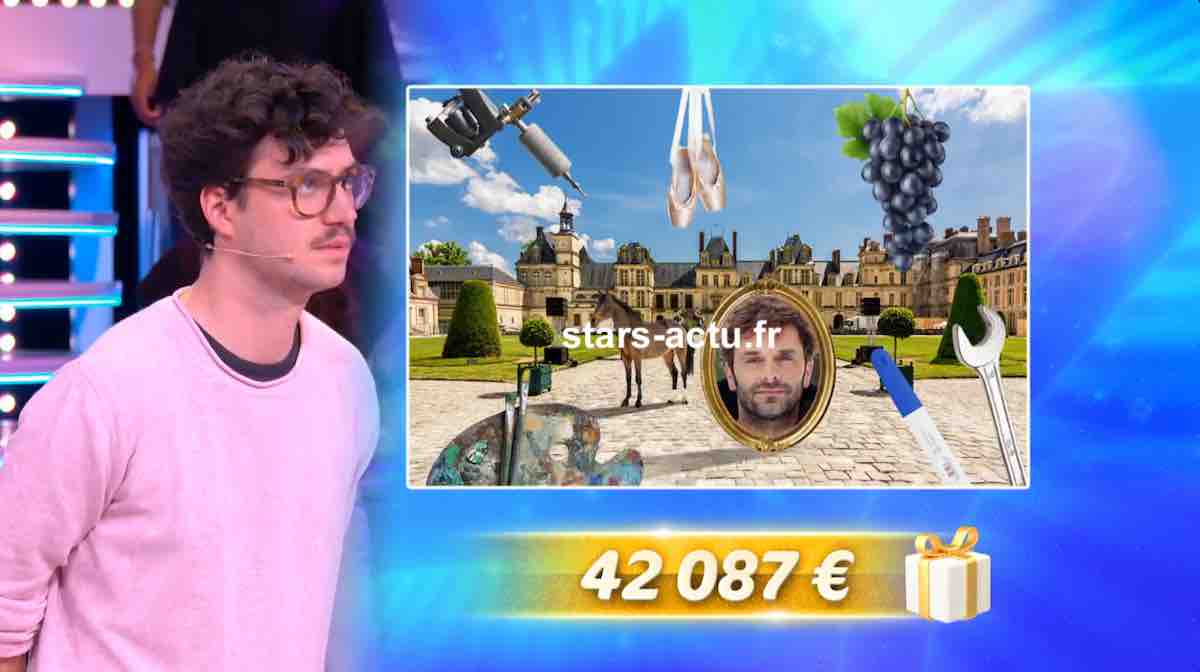 Les gains d’Aloïs monte à 6 610 euros de gains et à en juger sa tête face à l’étoile mystérieuse, il n’a toujours pas reconnu la célébrité apparue depuis la veille et pour laquelle il avait donné une mauvaise proposition hier.
